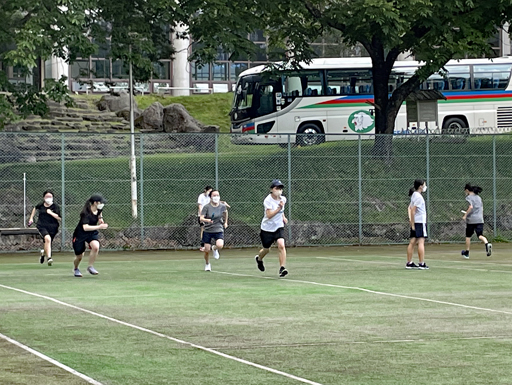 陸上競技部は、涼しい風がそよぐ高原で走り抜けました。