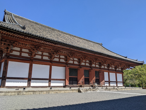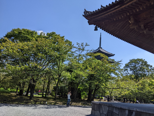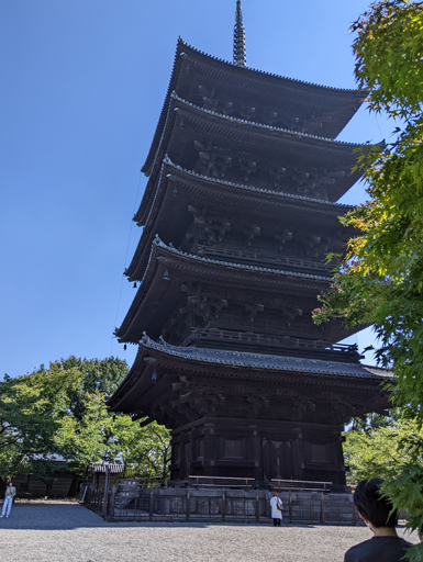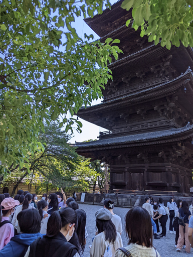 東寺に到着。晴天に恵まれ「講堂」での説明後に皆、それぞれ見学をしています。