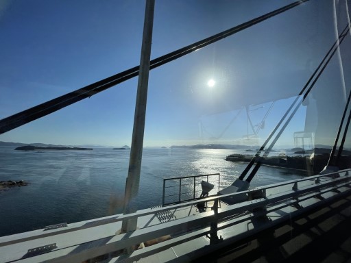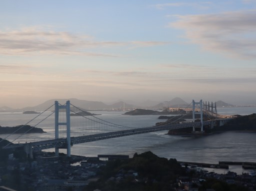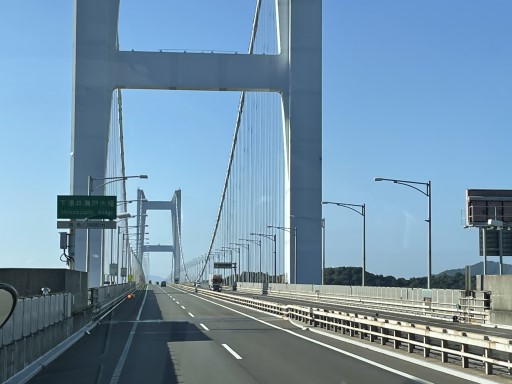 与島パーキングエリアで、天気に恵まれた瀬戸内海の小島や穏やかな海を眺めました。