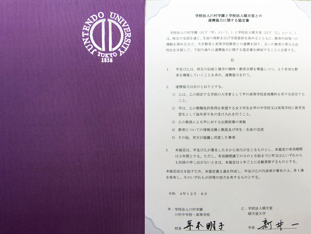 2022年12月8日、本学園は、順天堂大学と連携協定を結びました。