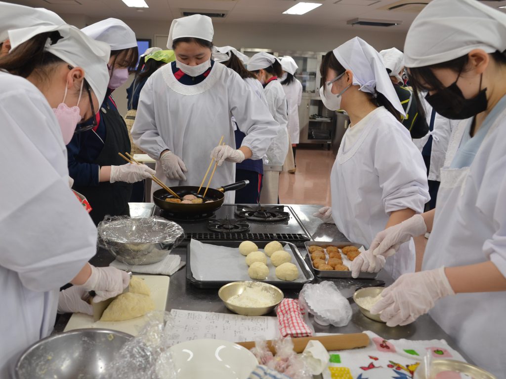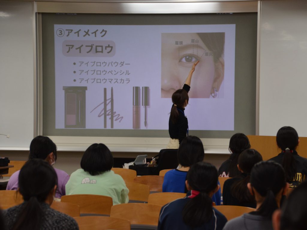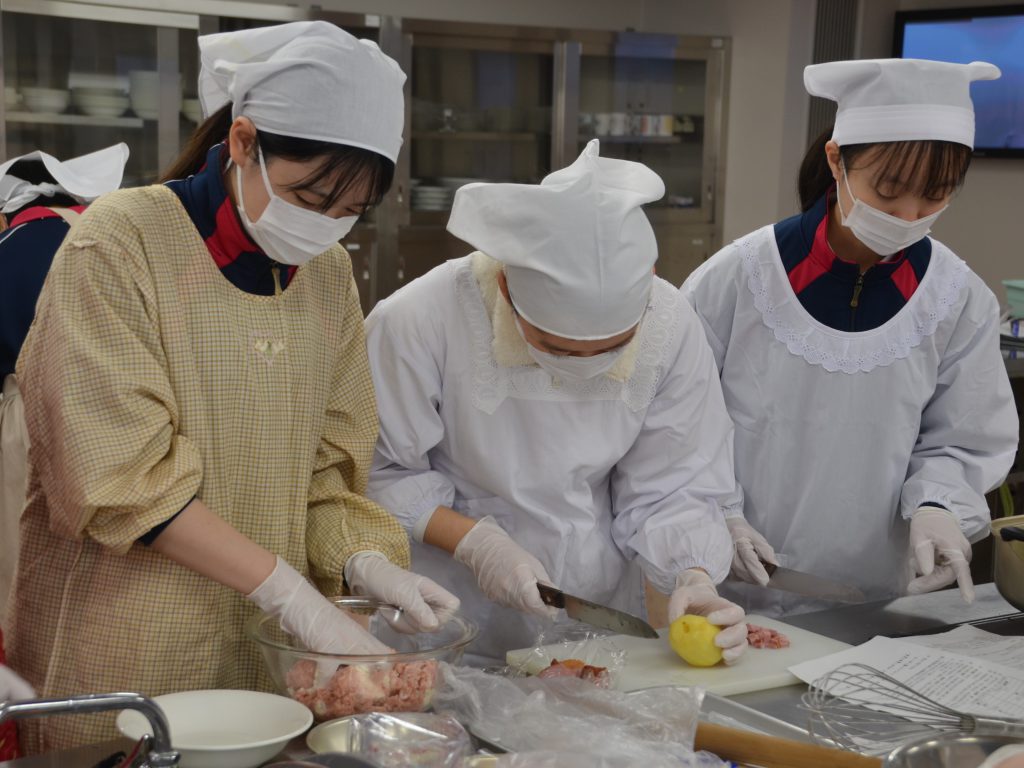 通常授業が終了し、高校3年生に向けて特別授業を実施しました。家庭科では、これまでの技術の総まとめとなる献立(ジャガイモ・ベーコン・チーズパン&ハム・チーズパン、ナゲット、わかめスープ)を班ごとに協力して作りました。また、卒業生を特別講師としてお招きし「メイクアップ講習」を開講しました。卒業後の身だしなみ講座の一環として、メイクアップの基礎、技術や効果について、実演形式で体験、見学をいたしました。