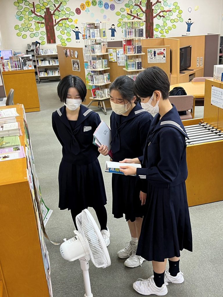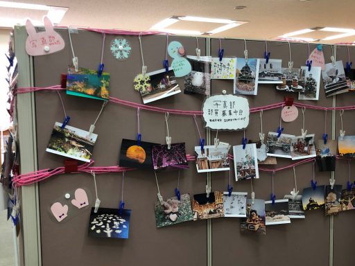 自分の趣味や興味がある本を探しに生徒たちがたくさん来館しました。大好きな料理の本や芸能人が読んで感動した本を読んだり・・・。生き生きしている生徒たちが図書館を明るい雰囲気にしてくれました。また写真部が新しい作品を掲示し、そのテーマは「冬」。素敵な写真に来館者は癒されます。