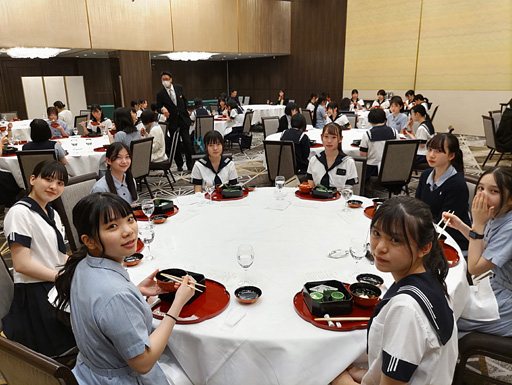 今日の夕食は、和食のお作法を教わりました。特に美しい箸の上げ下げを意識しながら、美味しくいただきました。