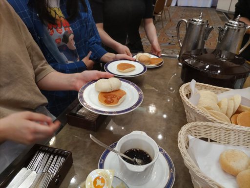 2日目の朝食を頂いています。パンとパンケーキはビュッフェ形式です。