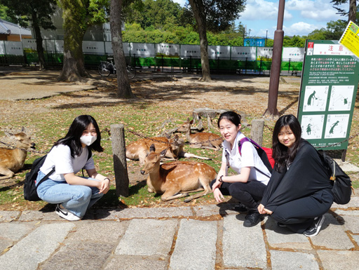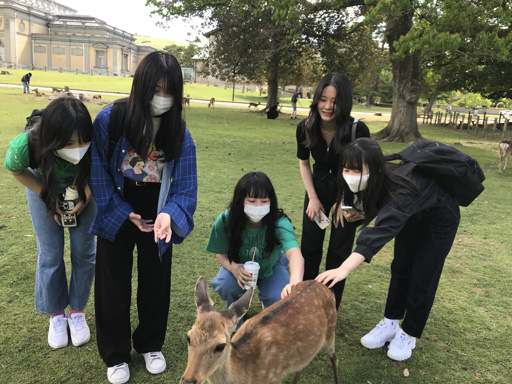 今日は、奈良・京都の班別自主研修です。午前中、東大寺を参拝したり、快晴の奈良公園で鹿と戯れたり、奈良国立博物館を見学していたりしている班を見かけました。