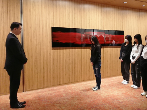 旅行係の代表がホテルの方へお世話になったお礼を述べ、無事に出発しました。
