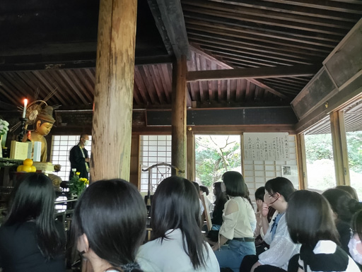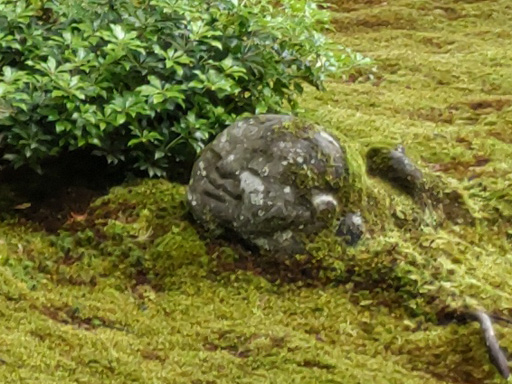 三千院の往生極楽院で、阿弥陀三尊像についてのお話を伺いました。素敵なお庭を散策し、綺麗な苔庭の中に可愛らしいお地蔵様を見つけました。