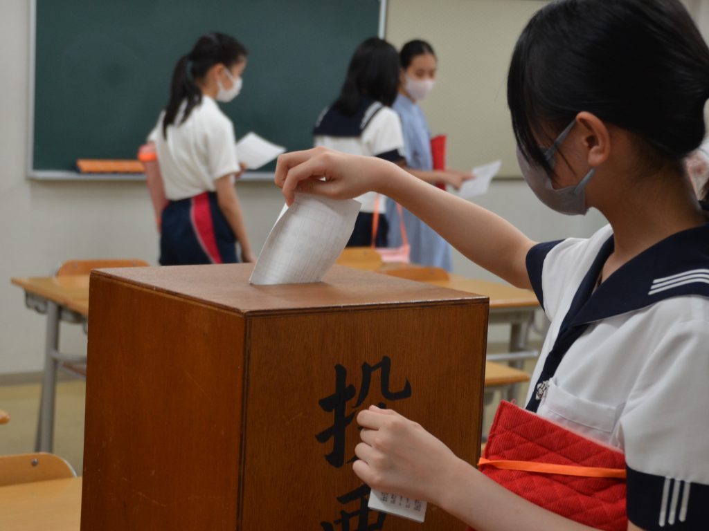 令和5年度の立会演説会は、数年ぶりに大講堂で行われました。各立候補者とその支持責任者は熱のこもった演説を行い、その後、全校生徒は選挙管理委員立ち合いのもと、投票をしました。