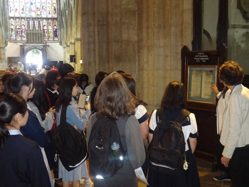 午前は、地元の学生さん達と英語研修でした。ビートルズの歌や、午後にシェイクスピアゆかりの地へ行くので、シェイクスピアについて英語を通して学びました。お互い打ち解けてきて、授業中の笑顔が増えてきました。