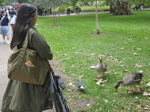 宮殿正面のザ・マル(騎兵隊が列をなす大通り)を通り、緑豊かなセント・ジェームズパークを歩きました。リスや大きめのカモに出会いました。