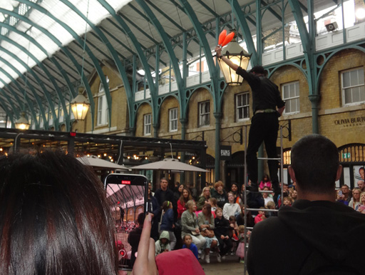 昼食後は、多くの人でにぎわうコヴェント・ガーデンで買い物を楽しんだり、大道芸を見たりしました。