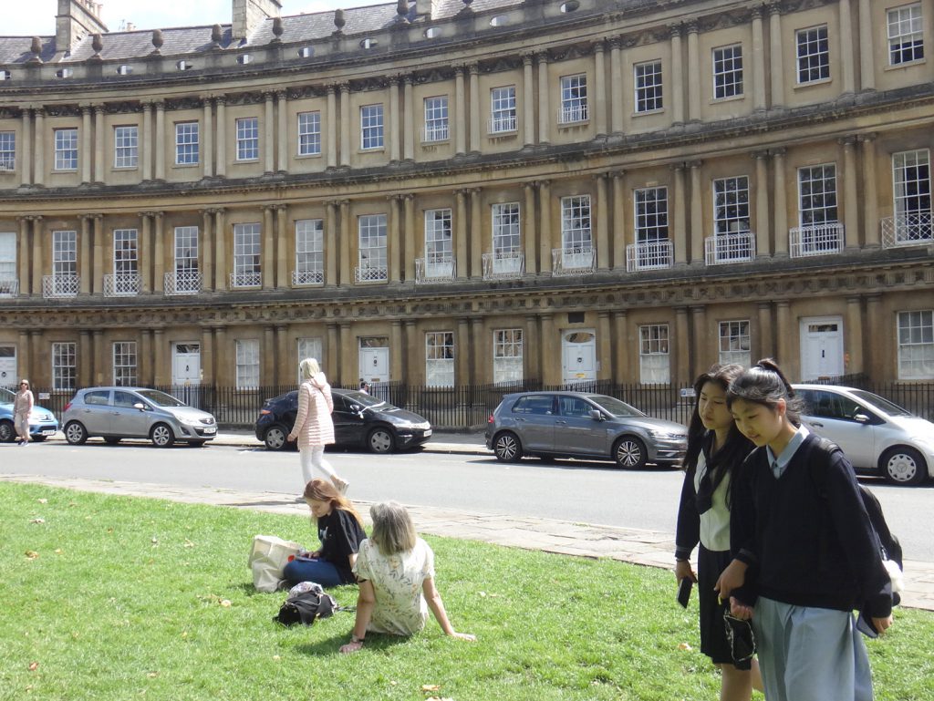 三日月型のThe Royal Crescent前の芝生でランチをしました。