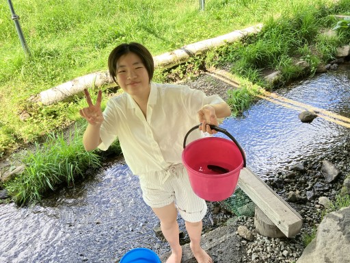 鷹山牧場に来ています。魚のつかみ取り体験に参加しました。