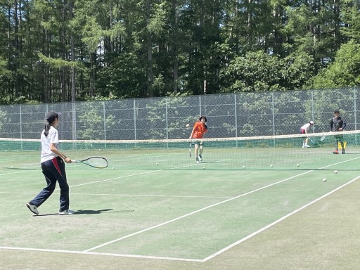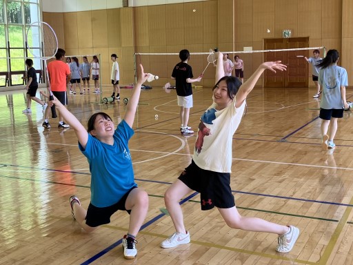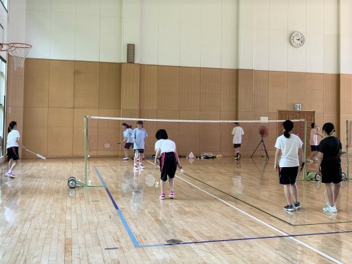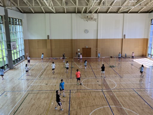 午後は体育館で練習です。基礎打ち、ラリー、試合と4コート使って取り組みました。