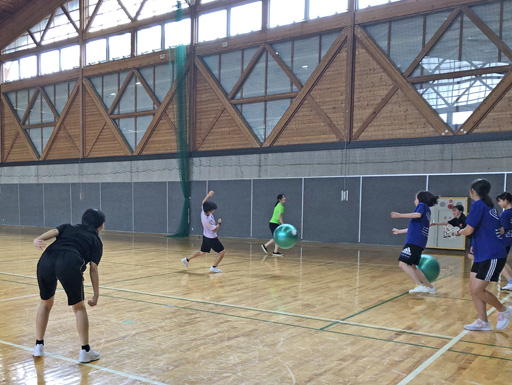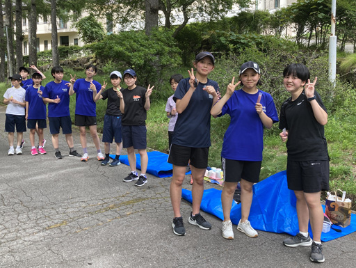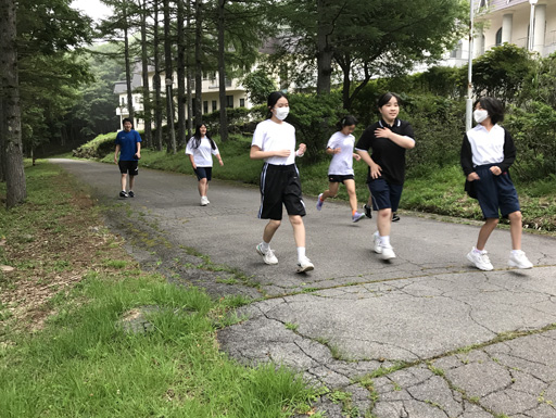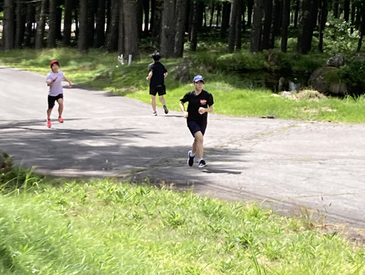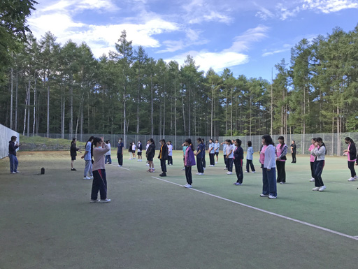 朝礼前の朝練です。宿舎前を散策した後、「だるまさんがころんだ」で反射速度を鍛えました。