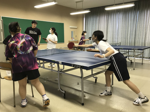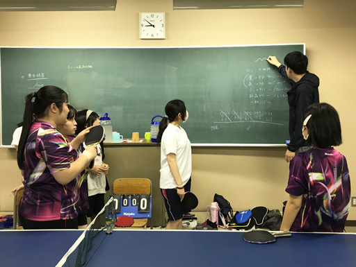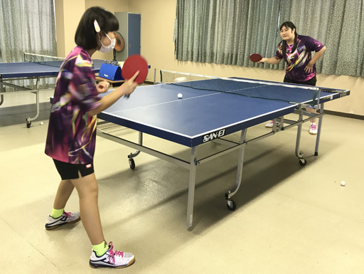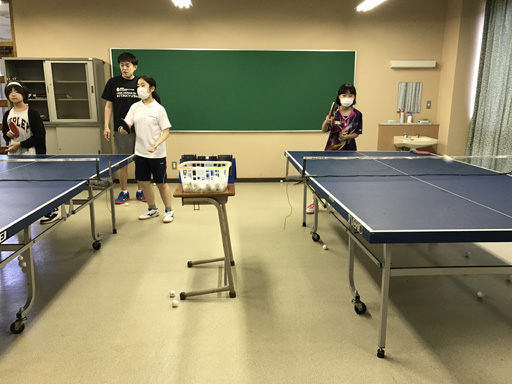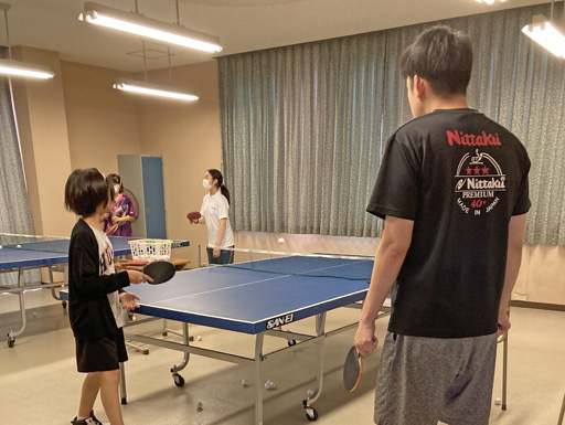 午前中の練習風景です。ラバーの違いや効果をコーチに教わり、自分のラケット以外を使って練習をしました。コーチからサーブの指導も受けました。