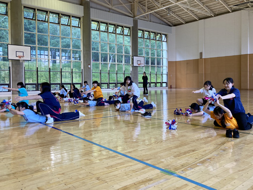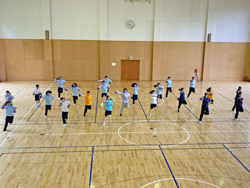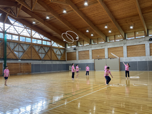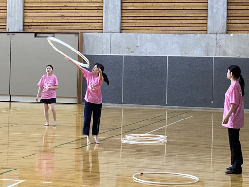 今日はフープを使った練習をしました。フープを高く放ちます。