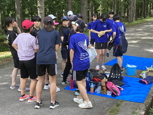 山荘に戻り、毎年恒例の坂道ダッシュです。まずは塩分を補給し、先輩から注意事項の確認です。