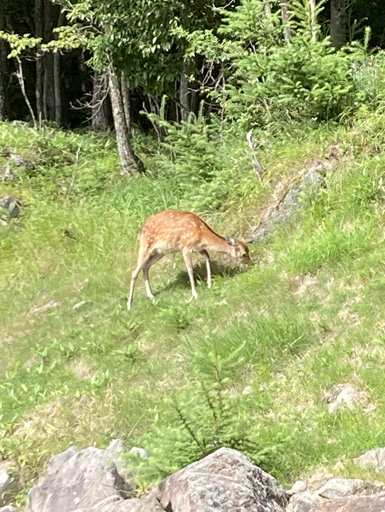 みんなが頑張っている間、食堂の裏には鹿が遊びに来ていました。