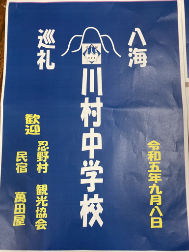 忍野村でほうとう作り体験の予定でしたが、台風接近による危険回避のため、残念ながら体験はせず、昼食としてほうとうをいただき、学校に戻ることになりました。大変美味しく、おかわりをする生徒が多数いました。