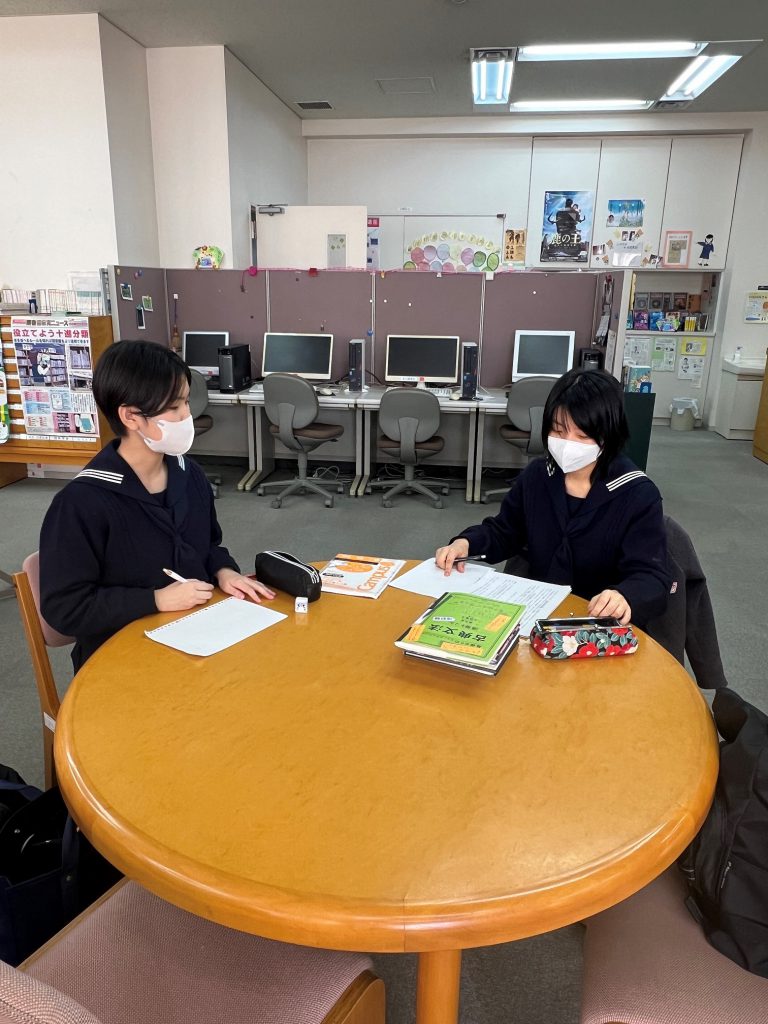 12月の中高図書館は定期試験のテスト勉強や課題に取り組む生徒が多く来館していました。また、定期試験後は、久しぶりに本を借りにくる生徒が多くいました。昼休みも読書をする姿がありました。恒例の冬休み貸出を利用して「たくさん本を読む!」と意気込むみなさんに、たくさんの本を紹介した1カ月でした。