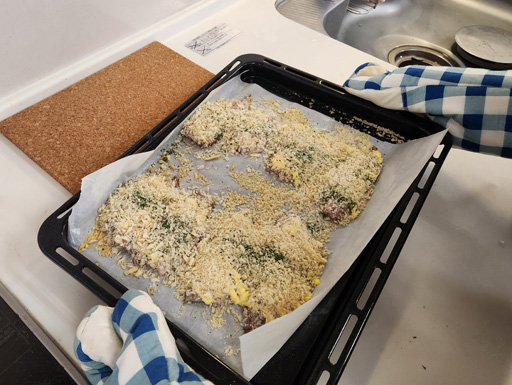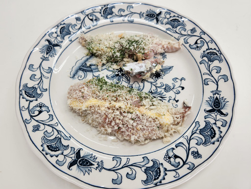 アジの身は、バジルとソルトで味付けをし、マヨネーズとパン粉をかけてオーブンで焼き上げました。ふわふわと柔らかく、そのおいしさに感動していました。