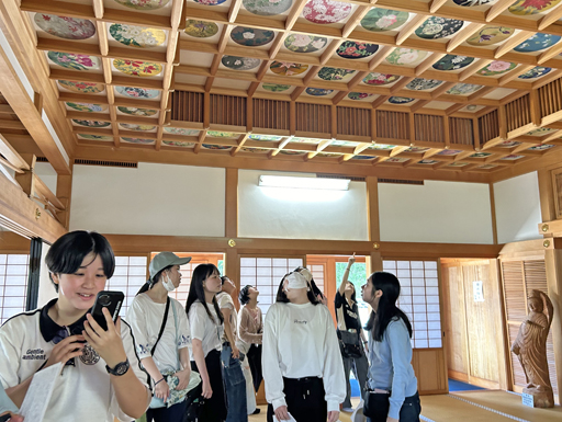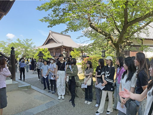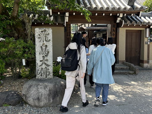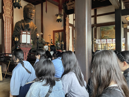 飛鳥寺ではお堂の中で説明を聞きました。
