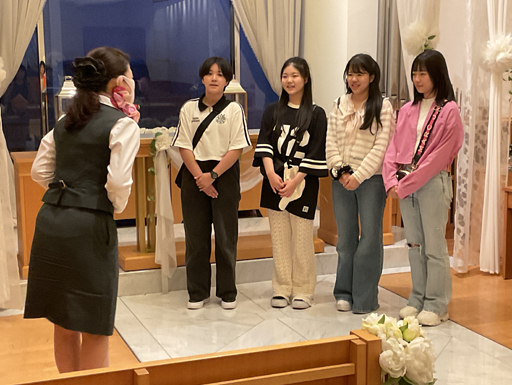 ホテルに到着。代表生徒として旅行係が、ホテルの方にご挨拶をしました。非常に心のこもったおもてなしをしていただきました。一晩お世話になります。