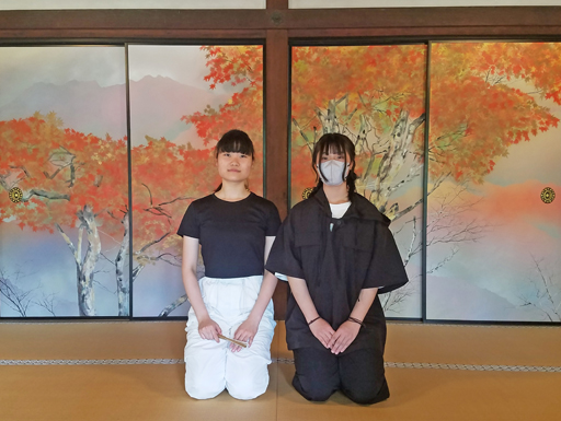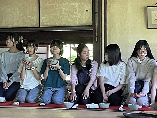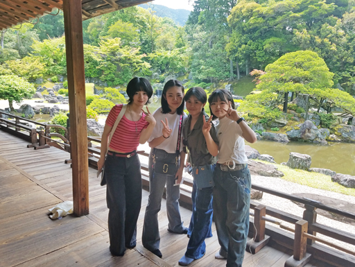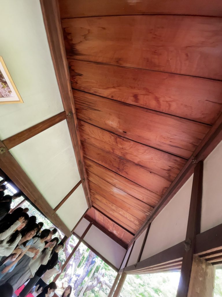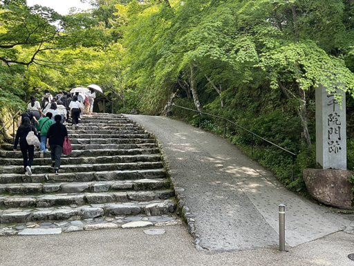 三千院では国宝である阿弥陀三尊坐像を見学しました。船底型天井の説明を聴き、「大和坐り」も体験しました。