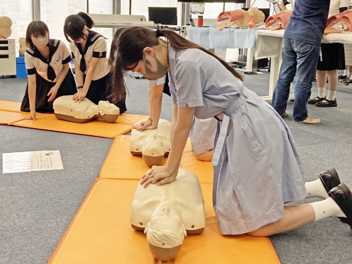 私が一番印象的だったのは医療の体験です。 ゴーグルをつけての実際の手術の光景はとても心に残りました。また、心臓マッサージの実習の先生の教え方がとても上手だったので、さすがと思いました。 実際に職業のこともうかがえたので、とてもよかったです。 (高2)
