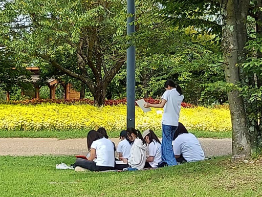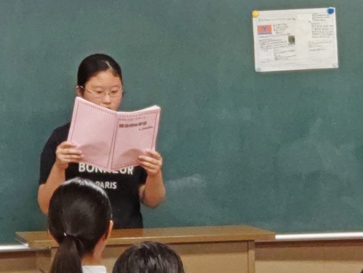 夜礼前の学習会で、地球環境について調べた事前学習の成果を発表しました。