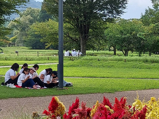 天候もよく、青空の下で見学をした後、美味しいお弁当をいただきました。