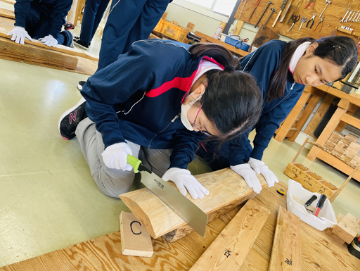 今日は、八ヶ岳中央農業実践大学校での活動です。「木工(ベンチ作り)・野菜作り(ほおずきの摘花や収穫)・林業(木登り)」のワークショップに取り組みました。