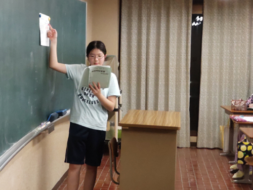 夕食後の学習会では、地球環境をテーマに、それぞれが興味を持った事柄について色々な視点から調べ、発表しました。