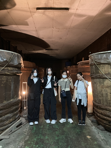 次に、味噌作り体験をする丸井伊藤商店へ行きました。自分たちより大きな味噌樽に驚いていました。