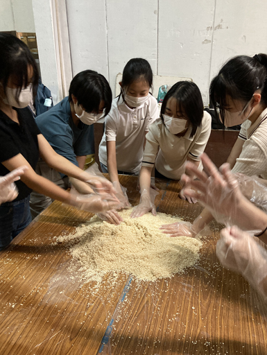 その後、味噌作りの説明を受け、いよいよ体験が始まりました。
