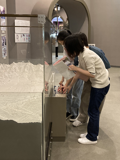 最初の見学地は八ヶ岳総合博物館です。行きの高速道路が事故渋滞のため、見学時間が短くなってしまいましたが、熱心に見学しメモをしていました。