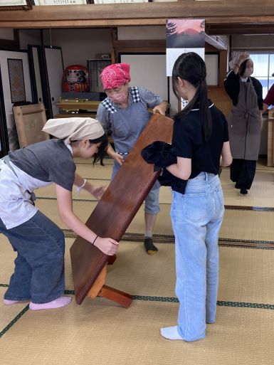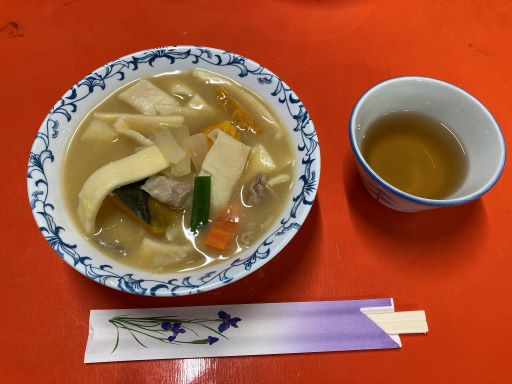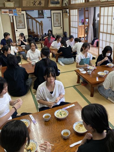 道具を片付けた後はテーブルを並べて、茹でていただいたほうとうを美味しくいただきました。