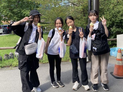 強い日差しで気温も高かったので、食後のデザートとしてソフトクリームを食べる生徒もたくさんいました。