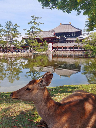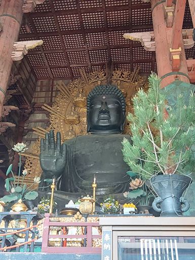東大寺の中門は色鮮やかで、青空に映えていました。
