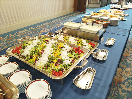 健康観察表を提出し、ホテルで朝食です。色とりどりのビュッフェから自分だけのワンプレートを作りました。