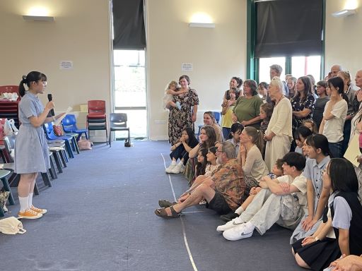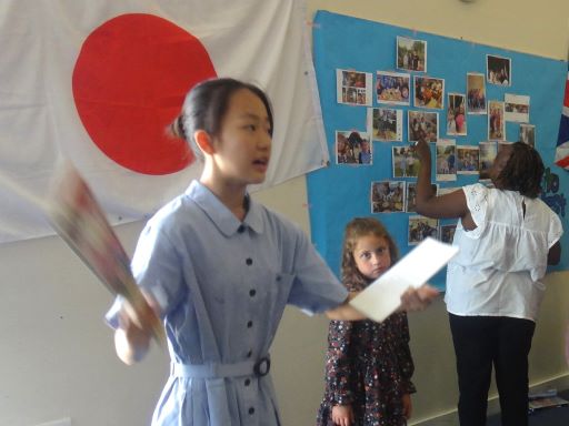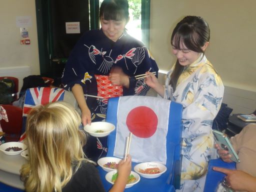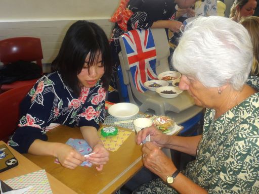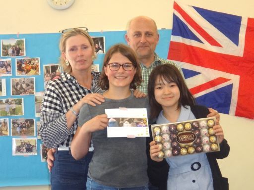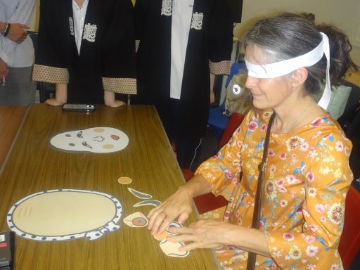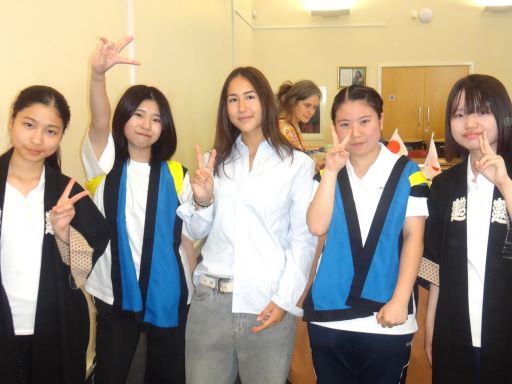 夕方、多くのホストファミリーに来ていただき、第1部は福笑いや豆(のかわりのチョコレートボール)つかみ、折り紙、羽根つきなどを楽しんでもらいました。第2部では、各ホストファミリーに感謝状を、授業でお手伝いいただた学生や先生に色紙等を贈りました。中3のソーラン節の後、全体でダンス(恋ダンス・・・夜遅くまで練習していた人もいるようです)をし、生徒の挨拶でPartyは閉会しました。