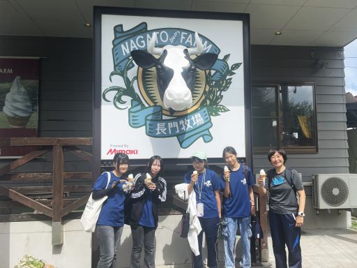 長門牧場でソフトクリームを食べたり、牧場の動物たちを眺めたりしてリラックスしました。その後、女神湖を2週ほど走り、山荘に戻りました。