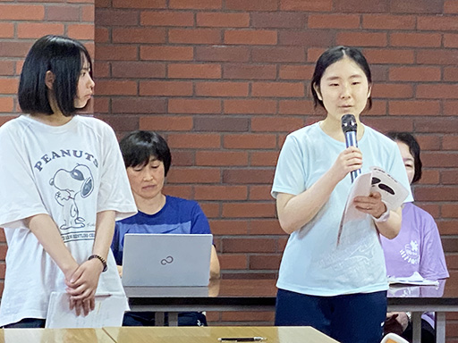 夜礼では、クラブリーダーがマイクをとり、合宿の成果を話してくれました。