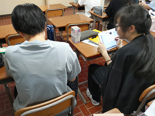 教室にて。コーチの説明を聞いて、それぞれの作品に取り組みました。