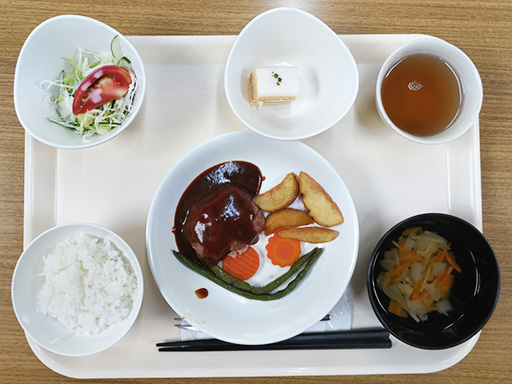 会食当番はバトン部です。メインは、蓼科牛の手ごねハンバーグです。