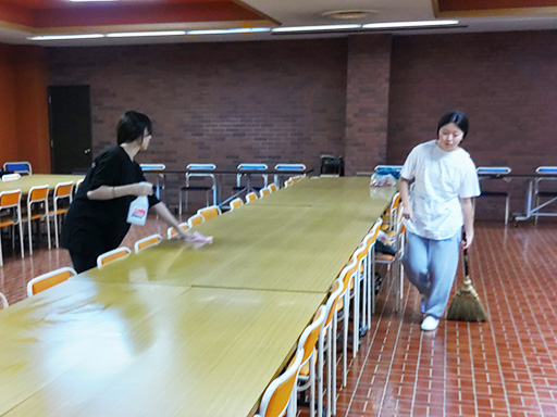 食べ終わった食器を゙片付け、食堂の清掃をし、最後に食堂の方にご挨拶をして、会食当番の仕事を終えました。