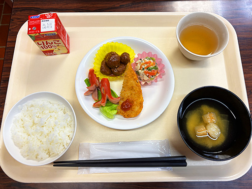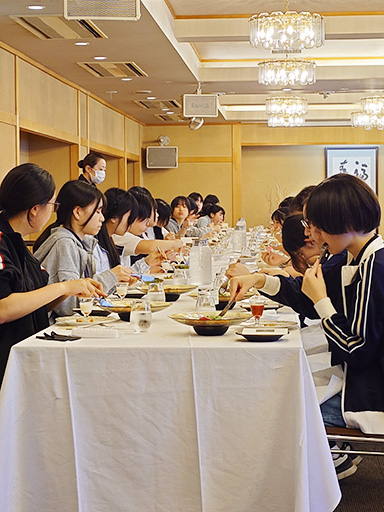 夕食はカレーライス。たっぷりの玉ねぎと一緒に煮込んだカレーはとても美味しく、お代わりをする生徒が多数いました。