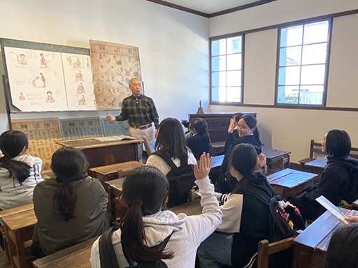 明治時代にタイムスリップし、当時の生徒になりきって授業を受けました。