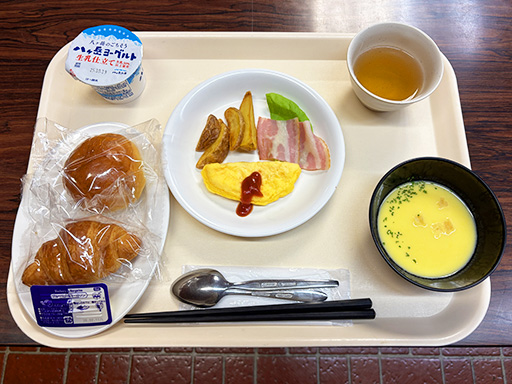 山荘での最後の朝食をいただいています。大好きなメニューばかり!